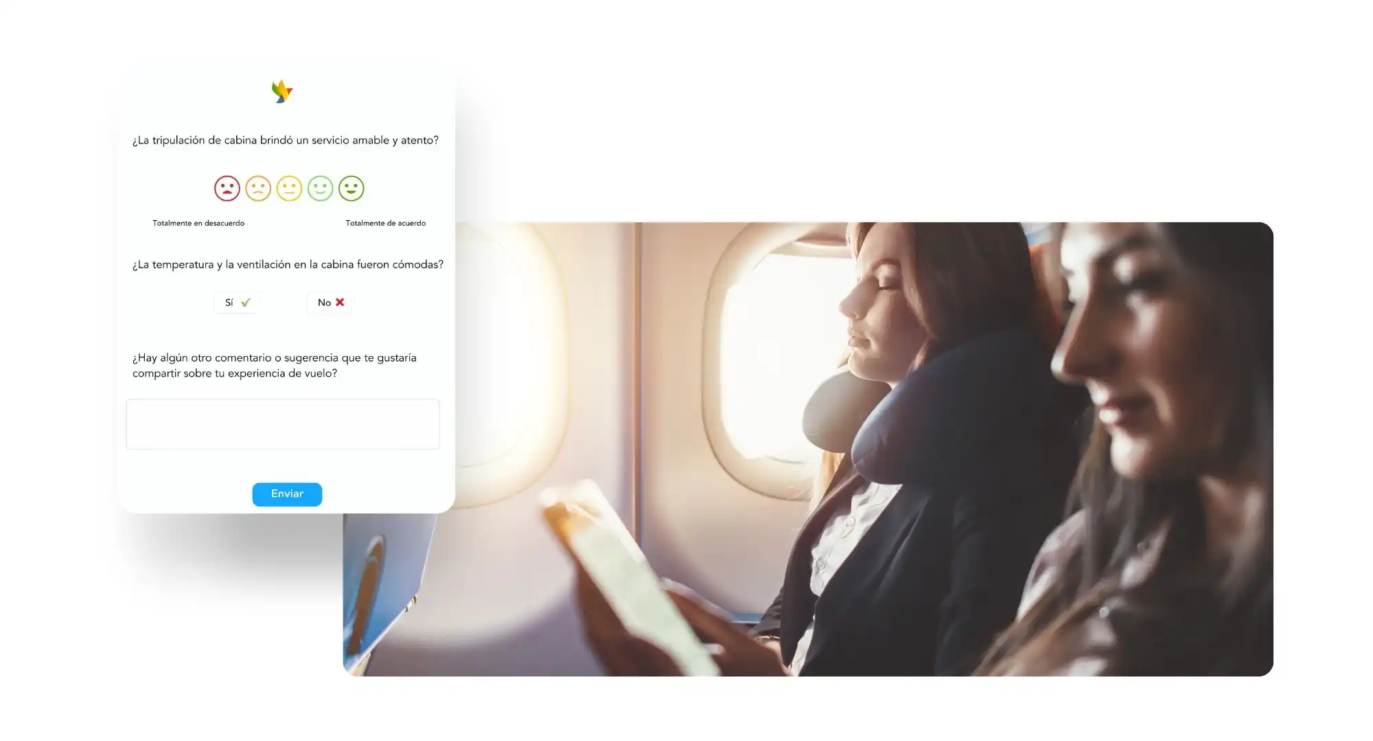 Al realizar encuestas de satisfacción del pasajero que se centren específicamente en la experiencia en vuelo, las aerolíneas pueden obtener información valiosa sobre cómo mejorar la comodidad, el servicio y la satisfacción general del cliente.