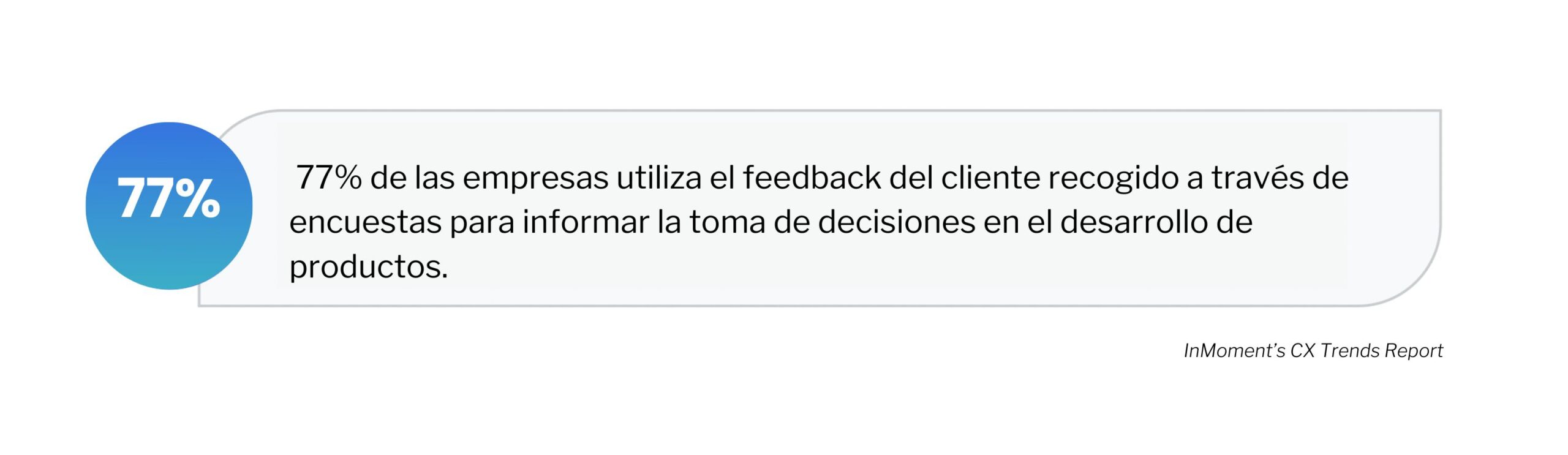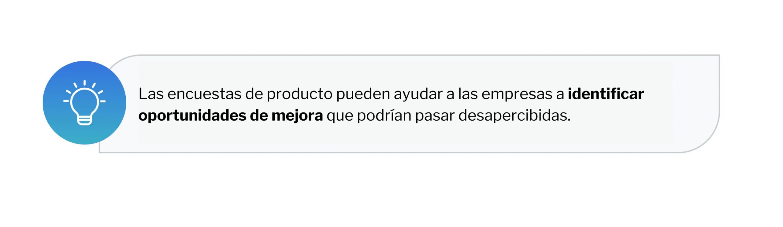 Las encuestas de producto te proporcionan acceso a datos concretos y evitan que hagas suposiciones acerca de tus usuarios. Al implementar una encuesta de opinión sobre el producto, podrás entender cómo piensan y sienten tus clientes, conocer sus patrones de compra, y descubrir qué prefieren adquirir. Este proceso te permite, de alguna manera, acercarte más a tus clientes más leales y mejorar la experiencia del cliente.