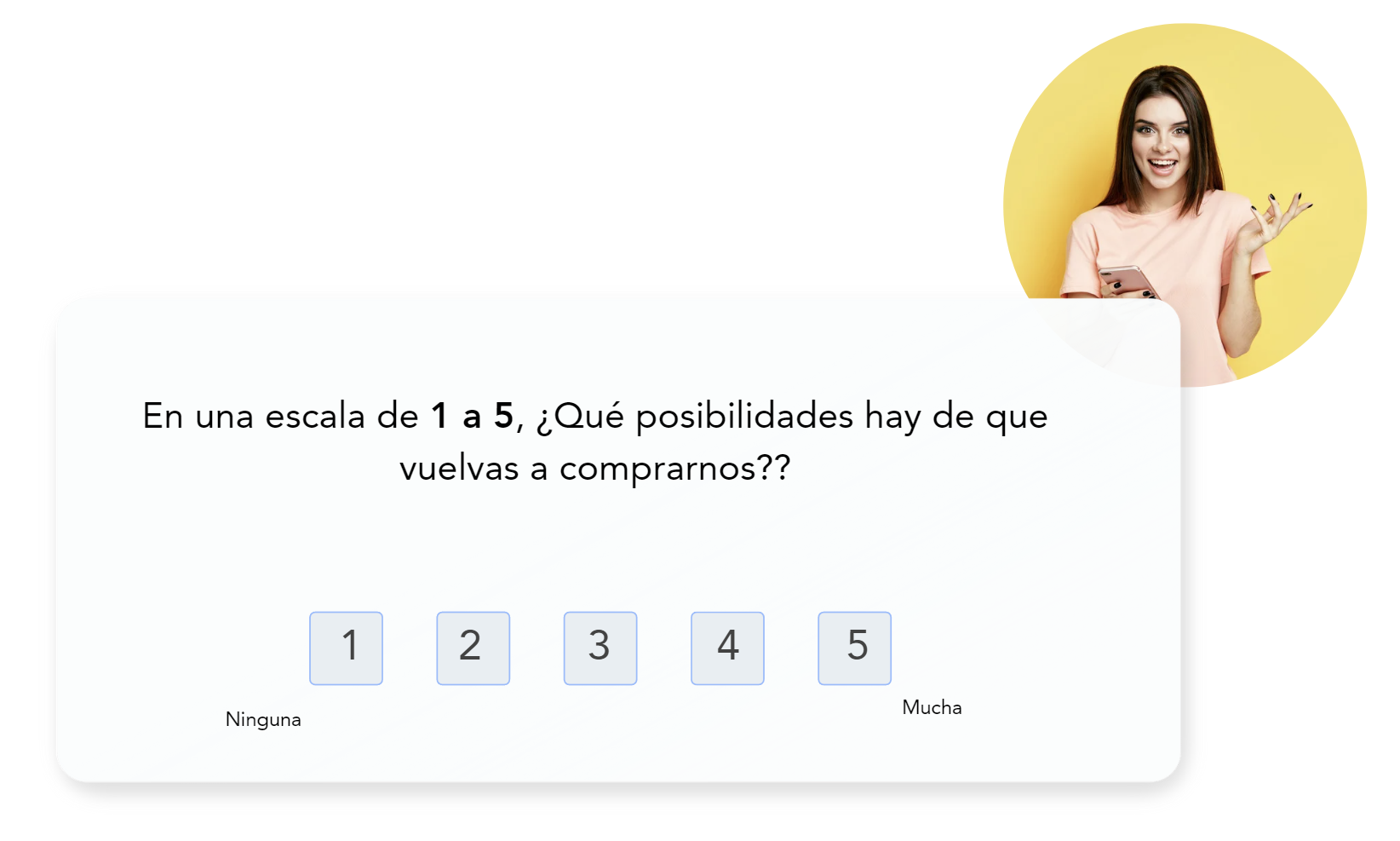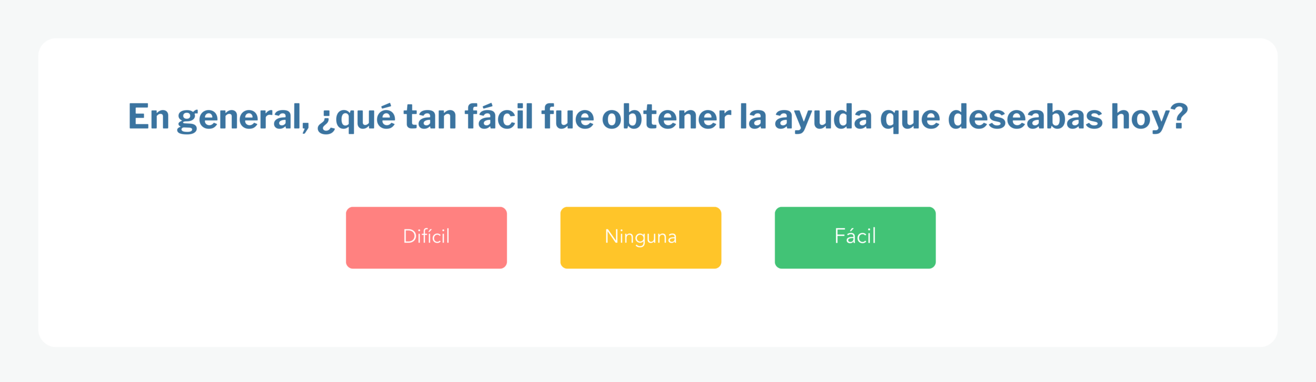 Una pregunta sobre la satisfacción del cliente ideal para los departamentos de soporte y asistencia técnica. Debes hacer este tipo de preguntas inmediatamente después del contacto del cliente con tu departamento de servicio. De esta manera, el cliente podrá consultar su experiencia.