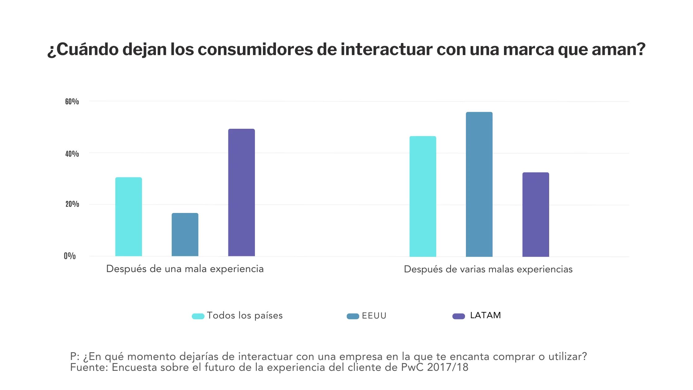 Las investigaciones muestran que hasta el 73% de los clientes están dispuestos a pagar más por una mejor experiencia. Al mismo tiempo, solo el 43% de los clientes están satisfechos con la forma en que se les atiende hoy y con su experiencia con empresas y marcas. Aún queda mucho por hacer y mucho por lo que luchar.