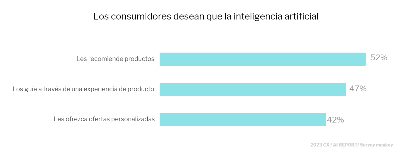 Esto es especialmente cierto para los consumidores más jóvenes. Por ejemplo, el 66% de la Generación Z quiere orientación de IA.
