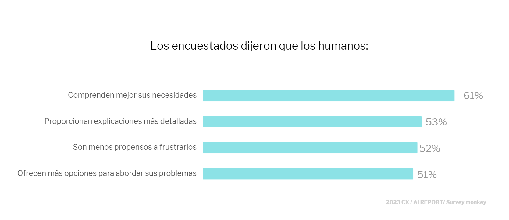 Las razones son claras: los humanos comprenden mejor, explican más y son menos propensos a frustrar y esto impacta en la satisfacción.