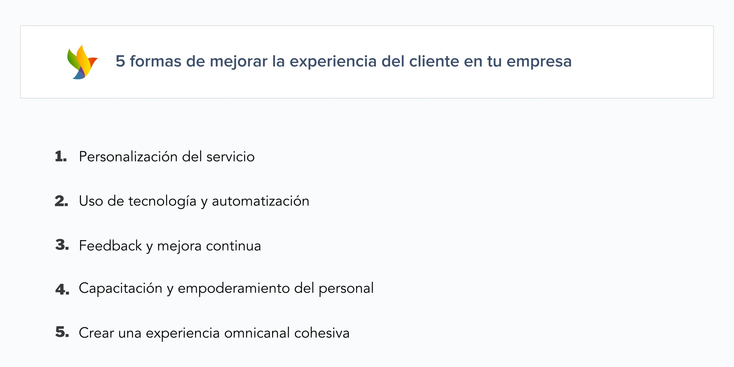 Mejorar la experiencia del cliente en tu empresa, puede un proceso continuo y evolutivo. Implementar estas cinco estrategias puede conducir a una mayor satisfacción del cliente, lealtad y, en última instancia, al éxito empresarial. Recordemos que en el centro de una gran experiencia del cliente está la comprensión y respuesta a las necesidades y expectativas de los clientes.