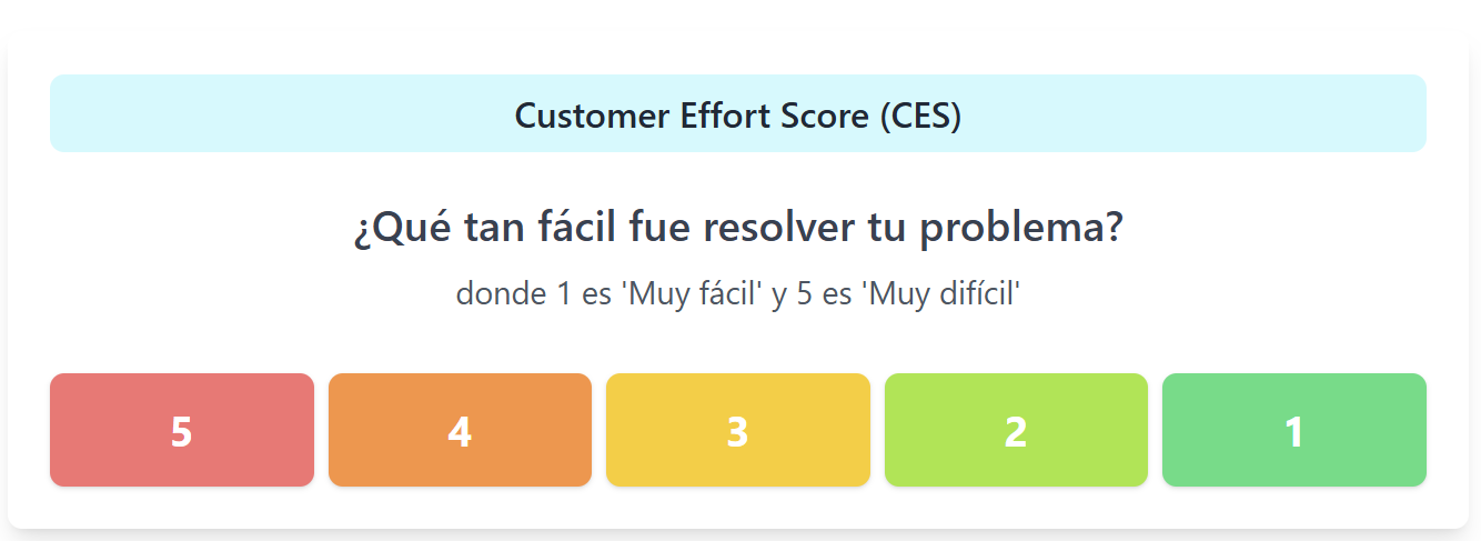 El Customer Effort Score (CES) es la métrica diseñada específicamente para medir este esfuerzo. Es una herramienta poderosa que responde a una pregunta simple pero crucial: «¿Qué tan fácil fue para ti realizar esta acción con nosotros?»