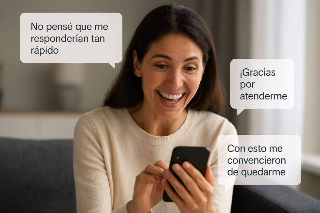 “No pensé que me responderían tan rápido”, “¡Gracias por atenderme!”, “Con esto me convencieron de quedarme”.