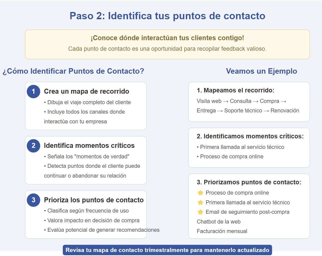 Paso 2: Identifica tus puntos de contacto clave con el cliente