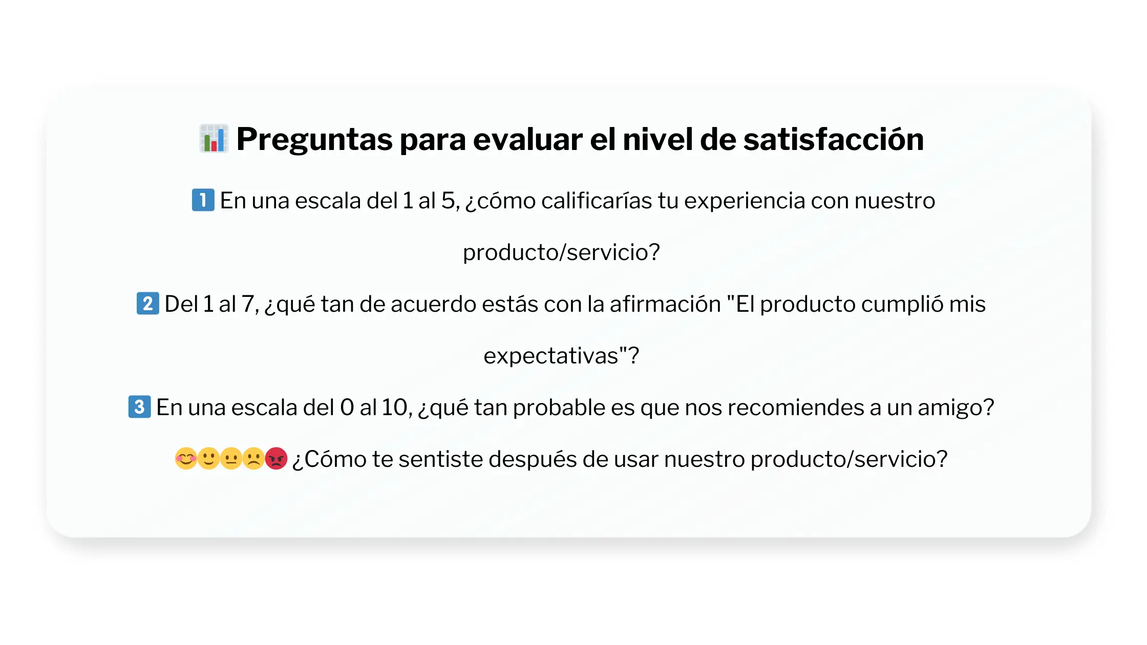 Al encontrar el equilibrio adecuado entre los diferentes tipos de preguntas y limitar el número de preguntas abiertas para evitar la fatiga de los encuestados, podrás obtener información valiosa sobre la satisfacción del cliente de una manera eficiente y efectiva. Recuerda adaptar el tipo de pregunta a tus objetivos específicos y a la naturaleza de la información que deseas recopilar.