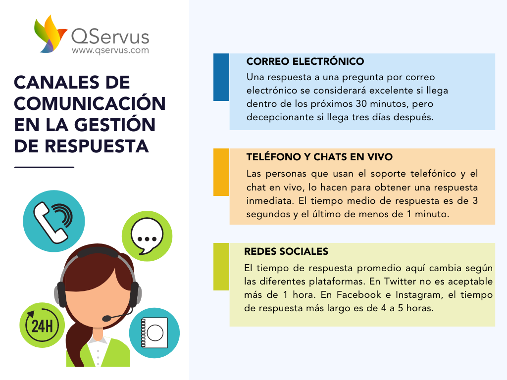 Claro, es genial contar con correos electrónicos y chats en vivo, pero con cada canal es necesario tener un tiempo de respuesta adecuado; y por supuesto este tiempo cambia en función de cada uno de estos canales.