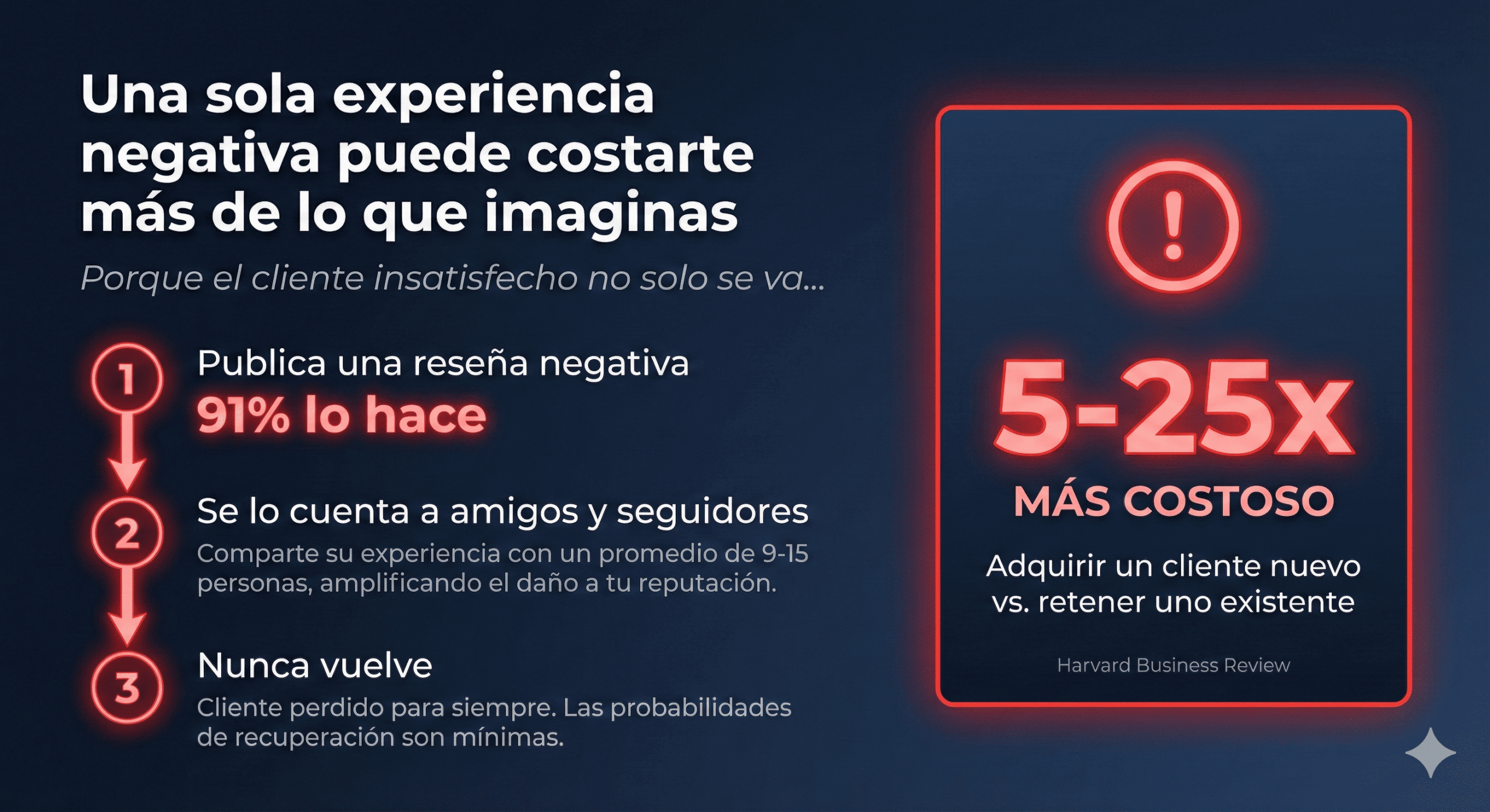 → Y nunca vuelve (el coste de adquisición de un cliente nuevo es entre 5 y 25 veces mayor que retener uno existente – Harvard Business Review)