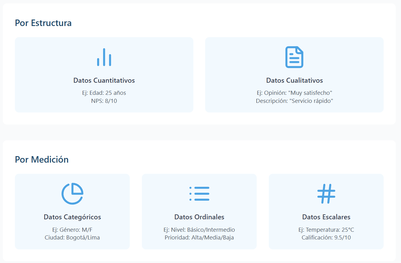 Clasificación de los datos según su estructura de medición