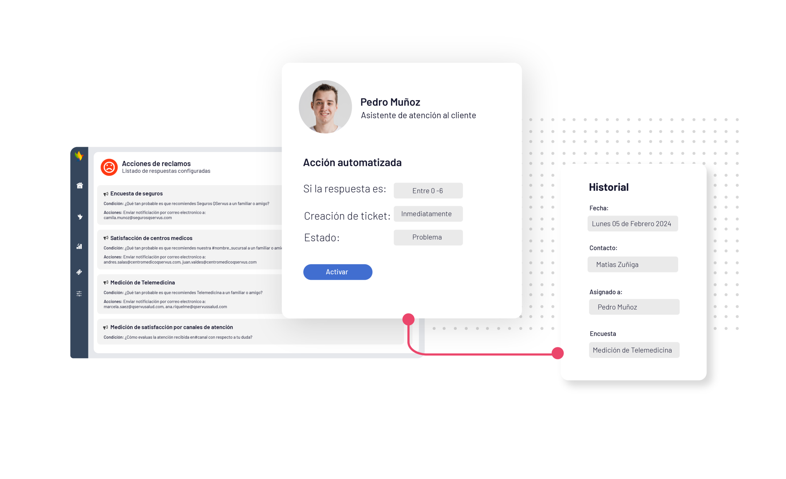 Detectar un problema sin tomar acción no resuelve nada. Por eso, QServus cuenta con Planes de Acción automatizadosque permiten que las instituciones de salud: