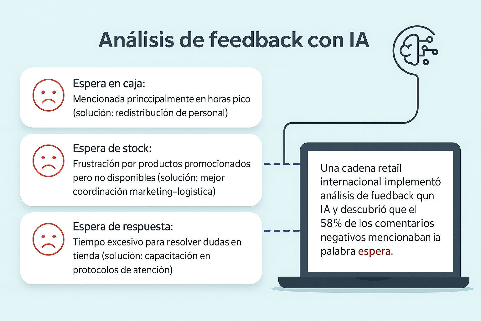 Escuchar a tus clientes va más allá de simplemente recibir sus comentarios; se trata de buscar entender las causas detrás de su insatisfacción. Aquí hay algunos pasos prácticos que puedes seguir: