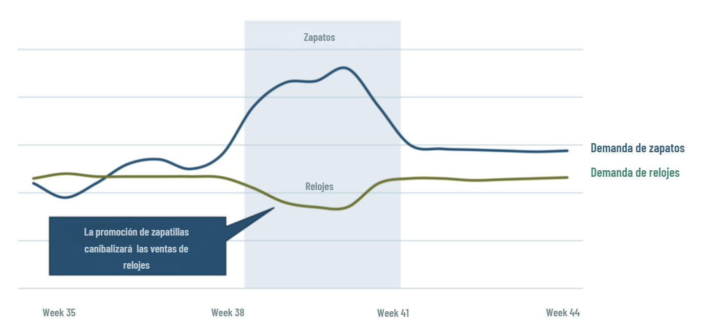 Imagina tener una tienda online con dos productos: zapatillas y relojes. Utilizas inteligencia artificial para prever la demanda con dos promociones distintas. Analiza datos históricos y factores como estacionalidad para cada producto, proporcionándote predicciones precisas sobre cómo las promociones afectarán las ventas. Esto te permite optimizar estrategias de marketing y gestión de inventarios, tomando decisiones informadas respaldadas por la IA para maximizar las ventas de ambos productos.