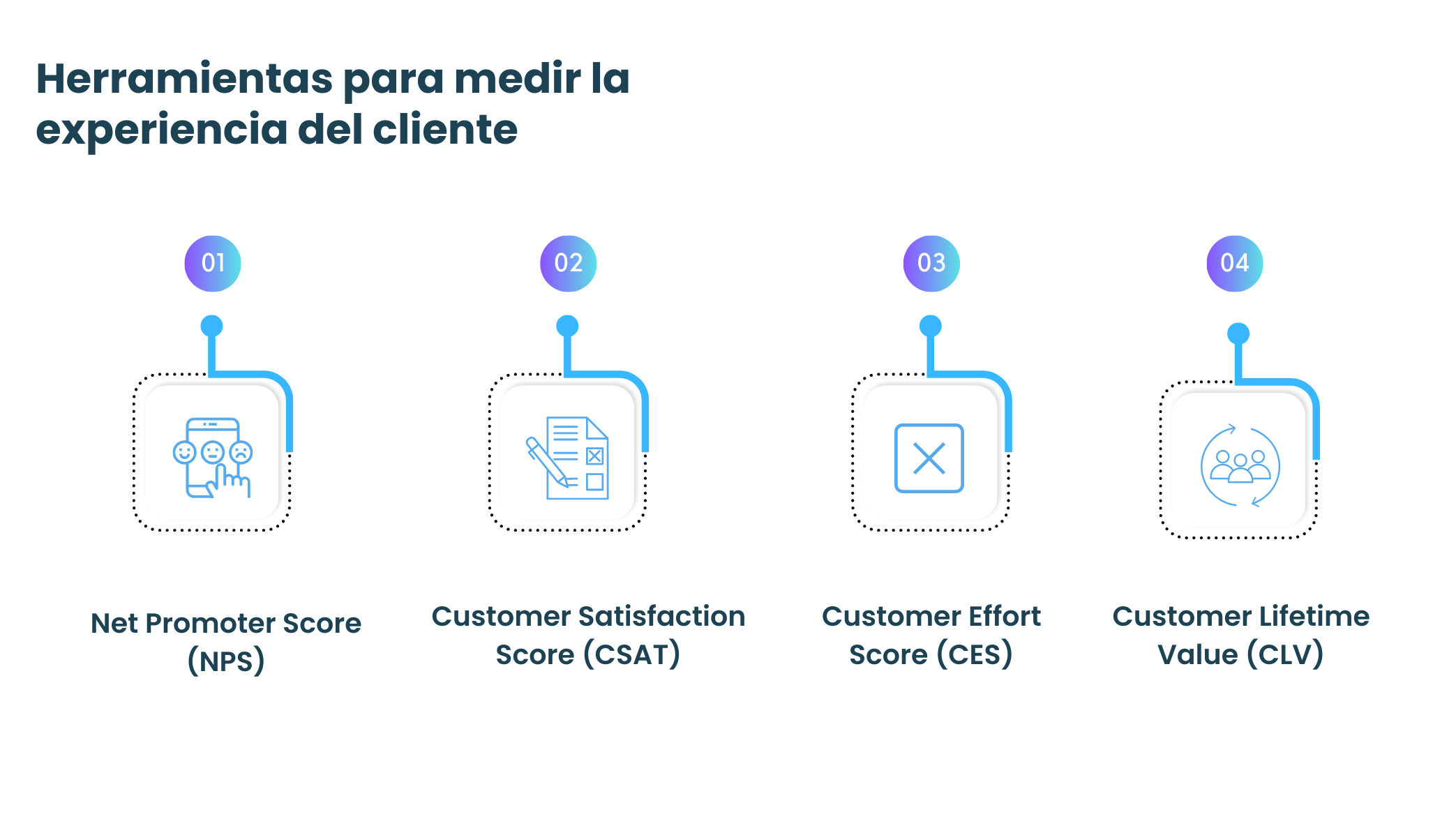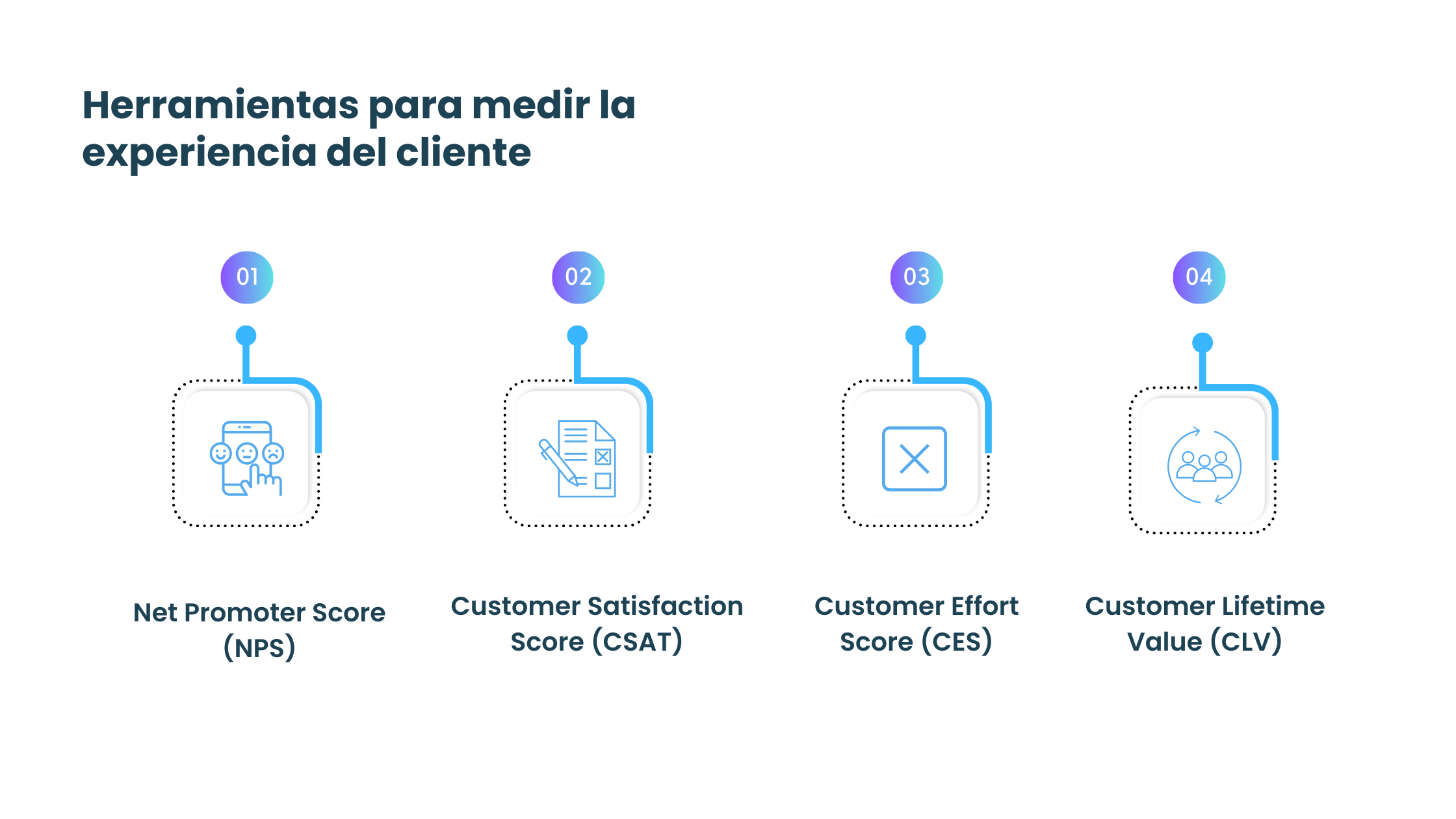 Las métricas de experiencia del cliente (CX) son herramientas esenciales para cualquier empresa que quiera mejorar la satisfacción del cliente y aumentar la lealtad a la marca. A través de estas métricas, las empresas pueden identificar problemas y oportunidades de mejora y tomar medidas necesarias para lograr una verdadera mejora continua, en la medida que las decisiones estarán mejor enfocadas. A continuación, se describen cuatro métricas de CX comunes con algunos datos para respaldar su importancia.