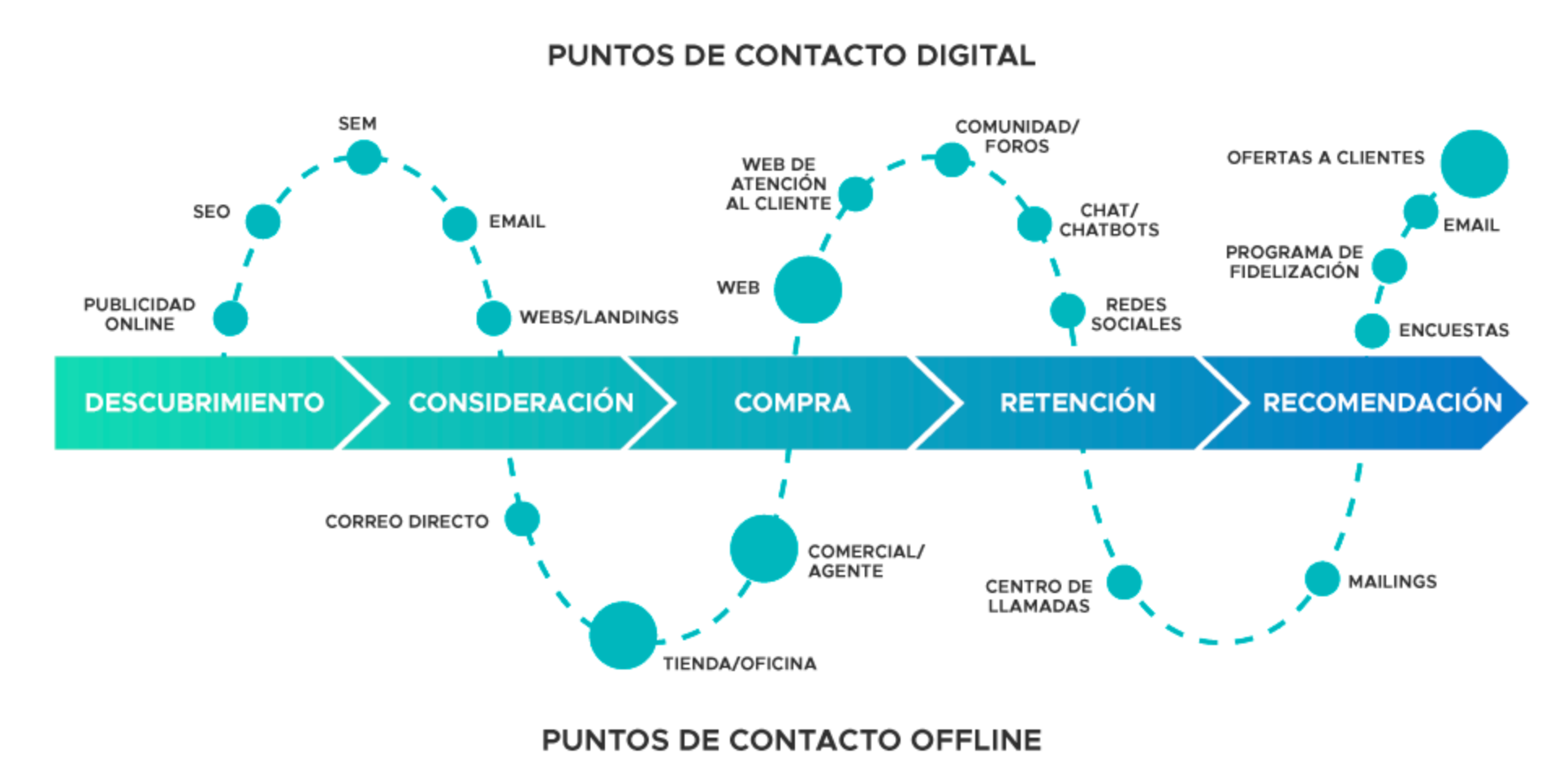 Cada uno de estos puntos de contacto debe contar con un propósito definido, una propuesta de valor y un mensaje que estén en sintonía con los objetivos de marketing y los perfiles de los clientes. Además, es esencial asegurarse de que los puntos de contacto sean uniformes, coherentes y complementarios en todos los canales y dispositivos.