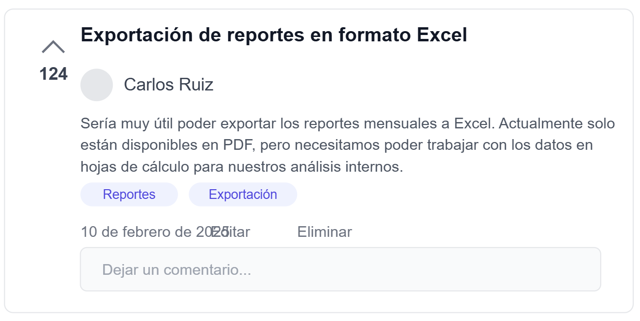 Las solicitudes de funciones son uno de los tipos de comentarios de clientes más valiosos que puedes recibir, ya que te proporcionan una visión directa de lo que tu audiencia realmente necesita y espera de tu producto o servicio.