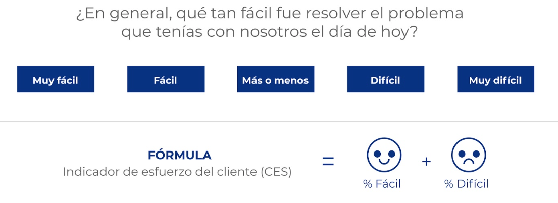 Puntuación de esfuerzo del cliente (CES). El esfuerzo, en una escala que defina, que les tomó a los clientes resolver su problema o responder a su pregunta a través de su servicio. CEB nos trajo esta útil métrica en este artículo de HBR.