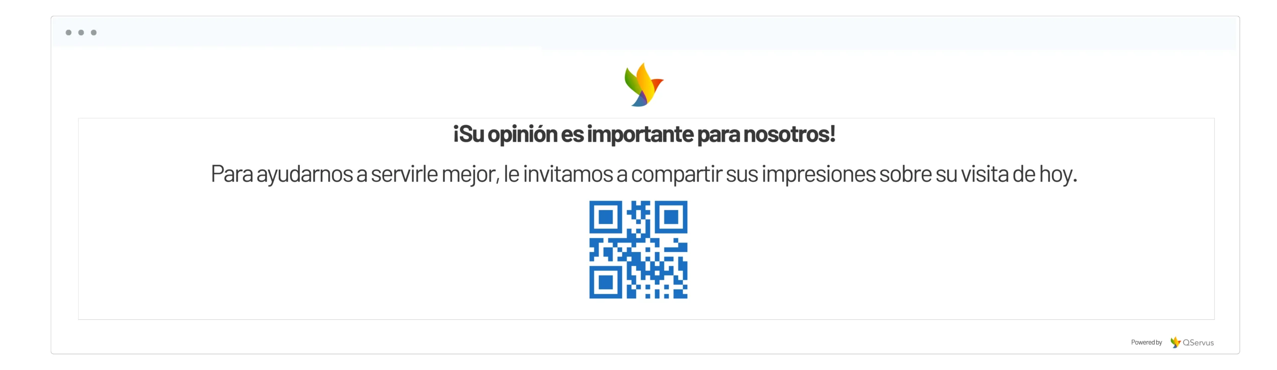 - Aplicación de QServus: Al escanear estos códigos, los clientes son dirigidos a encuestas de QServus para evaluar aspectos específicos de la propiedad, como el diseño, la ubicación, y la atención del personal.