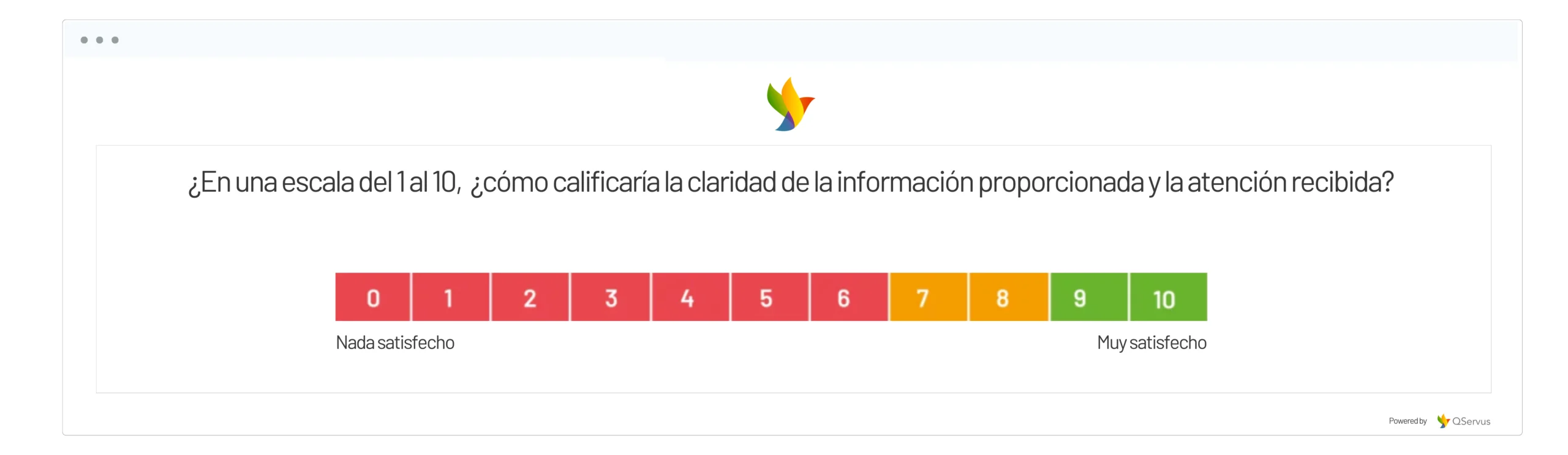 - Aplicación de QServus: Después de cada interacción, se envía automáticamente una encuesta de satisfacción al cliente para evaluar aspectos como servicio, comunicación y profesionalidad del empleado.