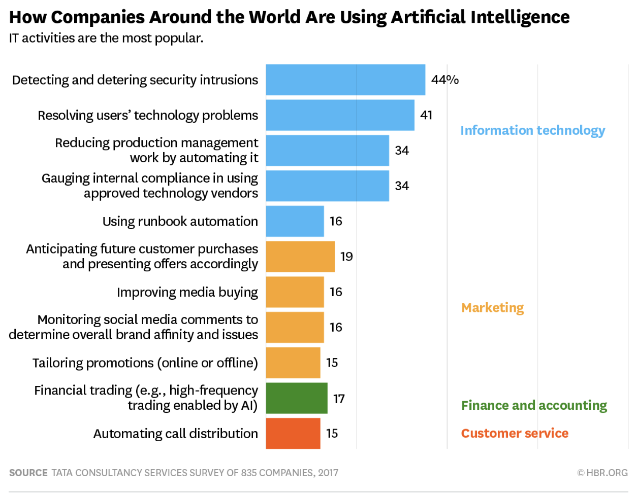 Según un informe publicado por la Harvard Business Review, las organizaciones están aprovechando la IA principalmente para los siguientes fines: