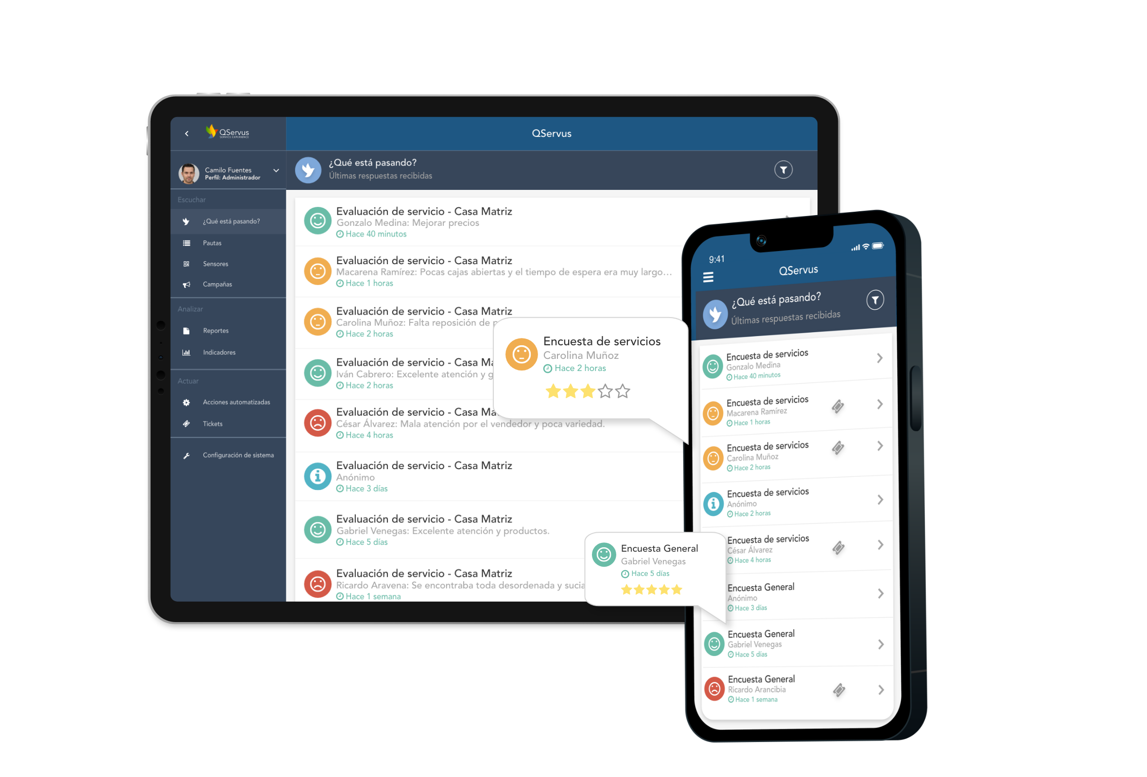 Los clientes no solo desean proporcionar comentarios en tiempo real, sino que también esperan que la empresa tome medidas concretas en base a sus opiniones. Aquí es donde QServus brilla. Nuestra capacidad de análisis te permite examinar los resultados de las encuestas en tiempo real. Mediante un intuitivo panel de control, puedes identificar patrones y tendencias relevantes, lo que te permitirá tomar decisiones ágiles e informadas. Además, gracias a los indicadores e informes personalizables, podrás revisar tus resultados en distintos formatos y utilizarlos para presentaciones internas y externas, impulsando así una mejora continua en tu organización.