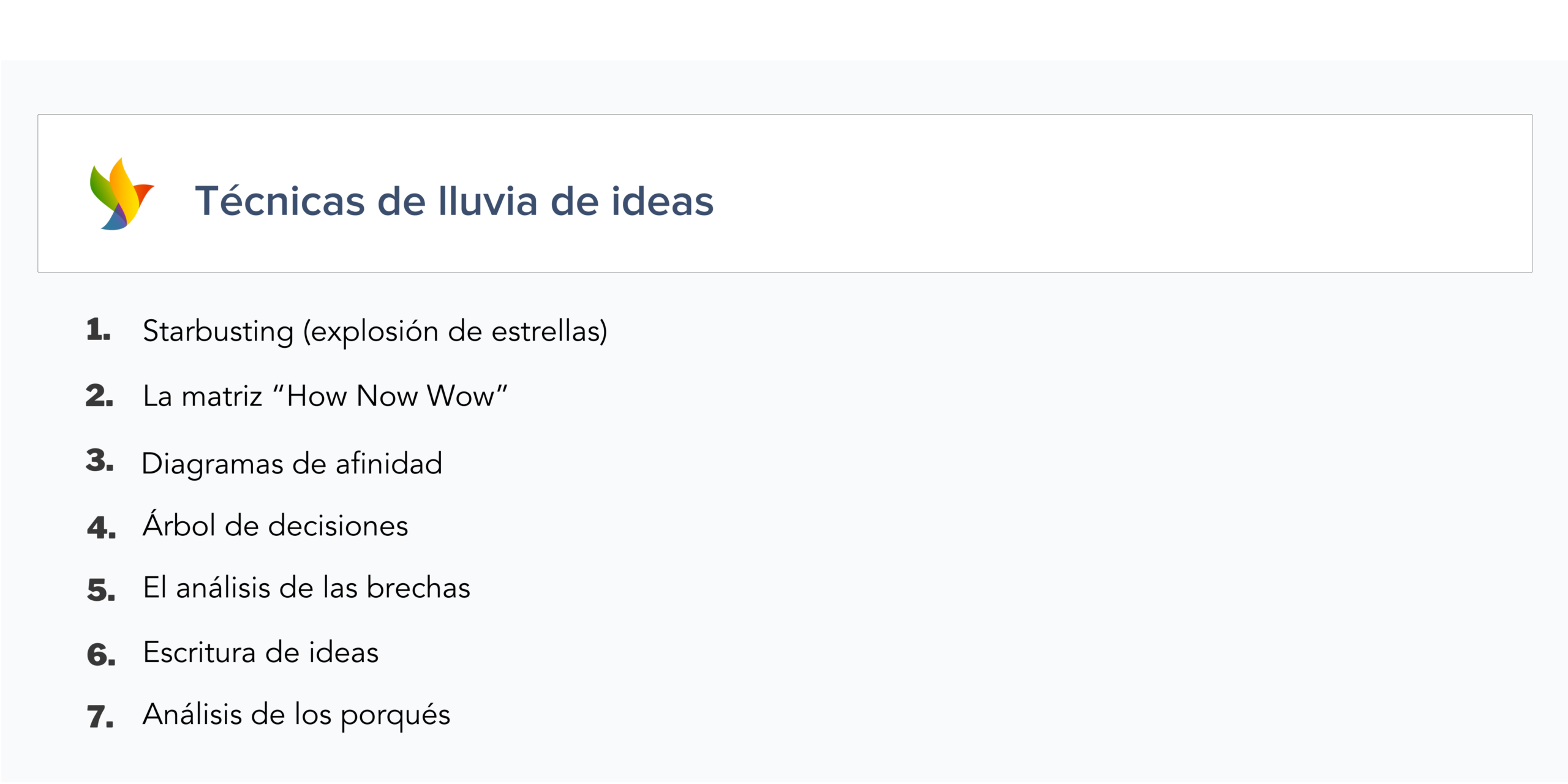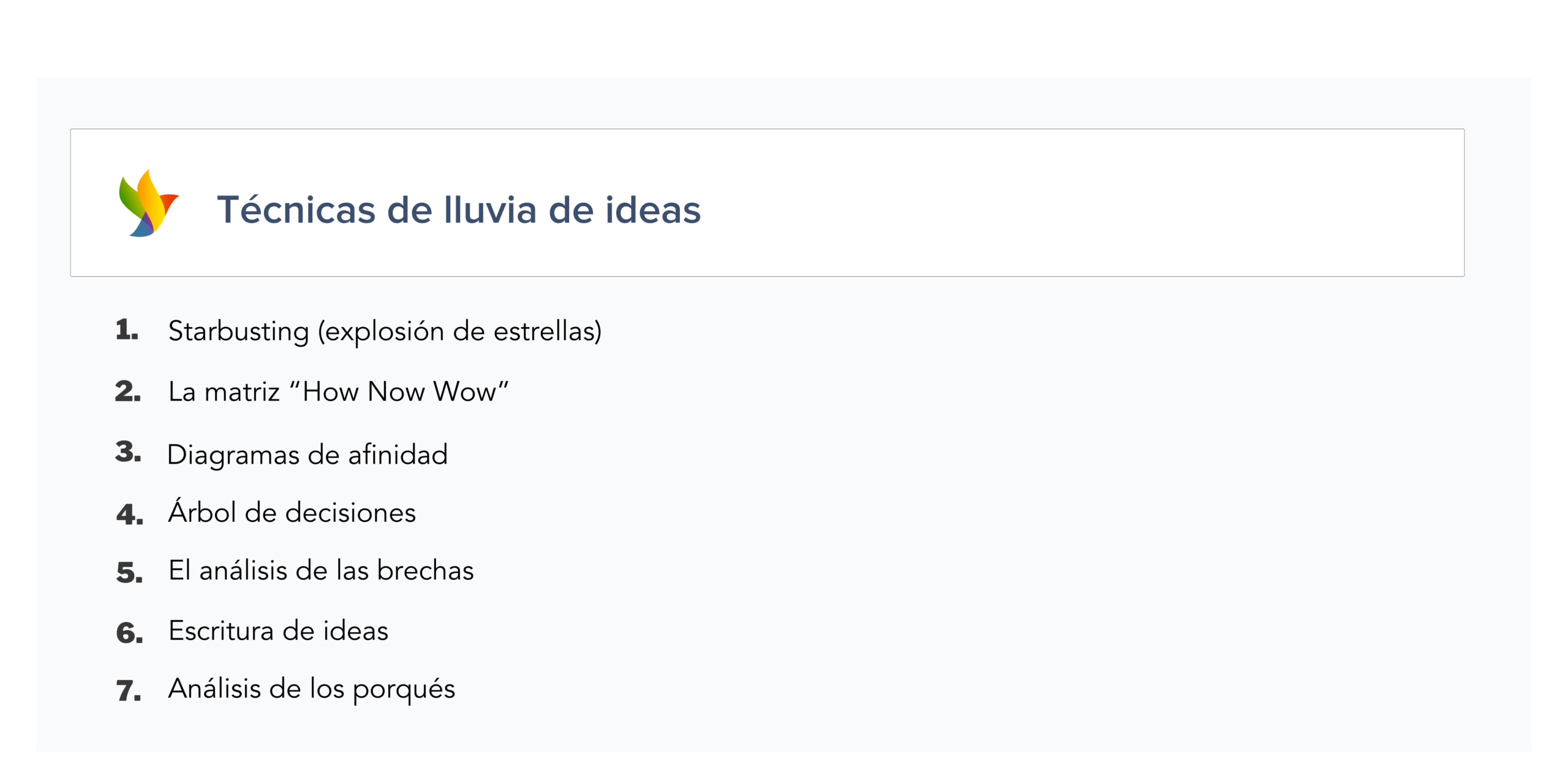 Técnicas analíticas para lluvias de ideas + ejemplos