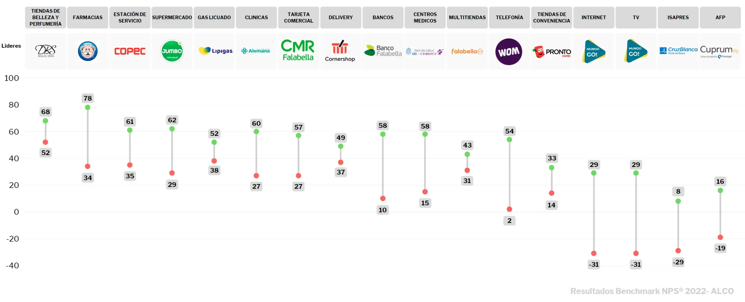 Elaborado por la consultora ALCO en conjunto con la Escuela de Negocios de la Universidad de Los Andes (ESE), el benchmark evalúa anualmente los índices NPS de las principales empresas en los más importantes sectores de la economía chilena.