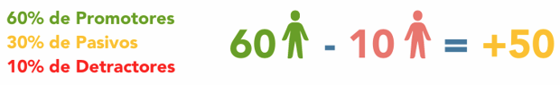 Por ejemplo: si tienes un 60% de Promotores, un 30% de Pasivos y un 10% de Detractores, el NPS será de +50.