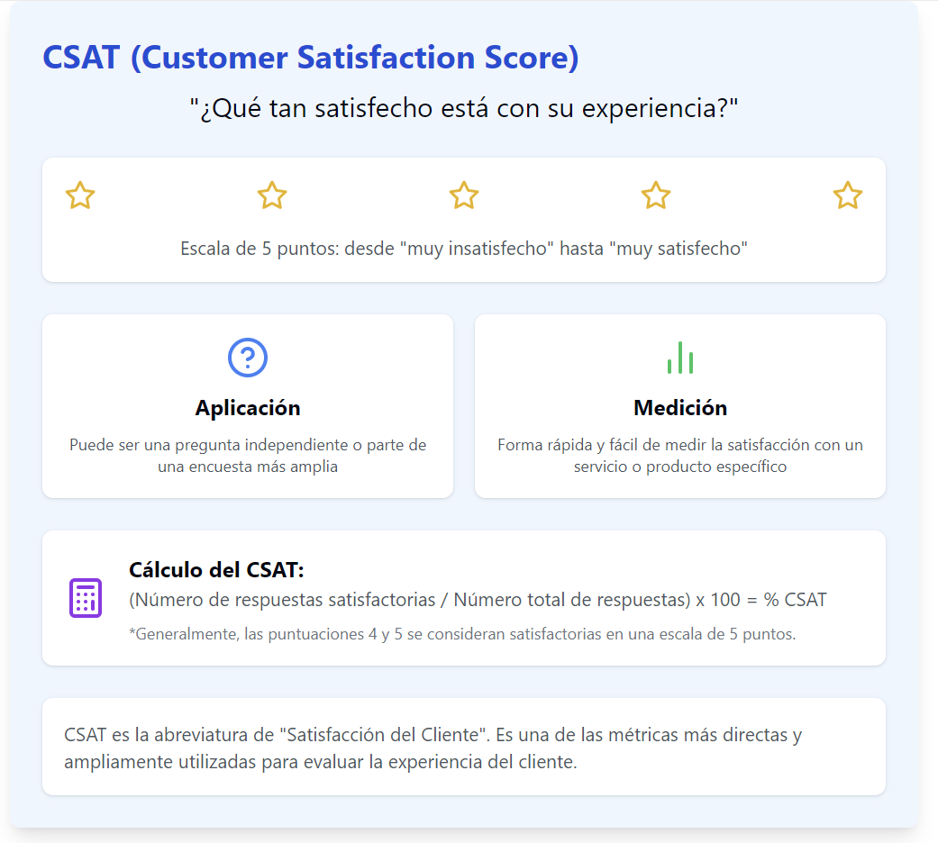 - CSAT: después de interacciones puntuales