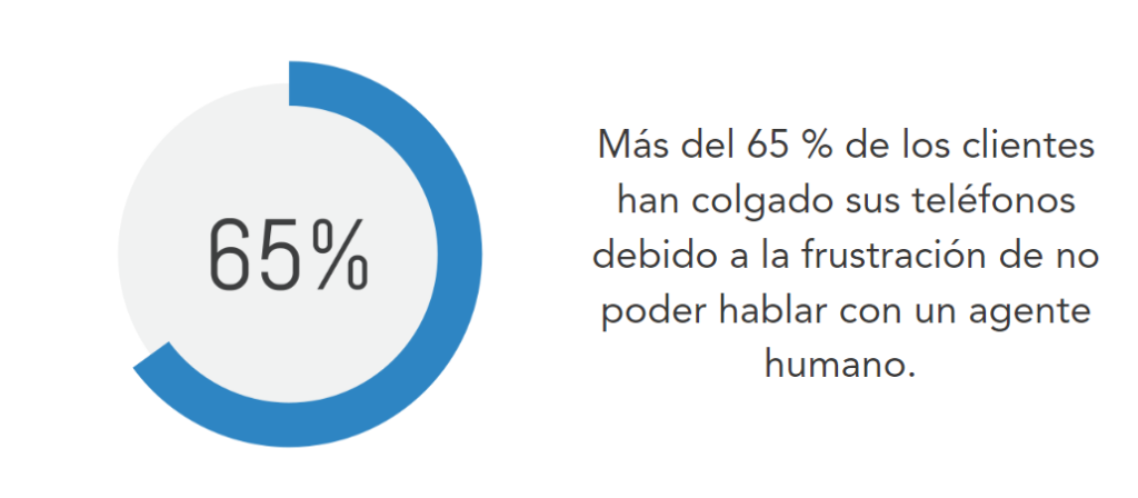 Y hay muchas posibilidades de que estos clientes se den por vencidos y se lleven su negocio a otra parte. Piénselo: en tiempos de angustia, ¿quién querría escuchar una voz robótica dar un montón de instrucciones?