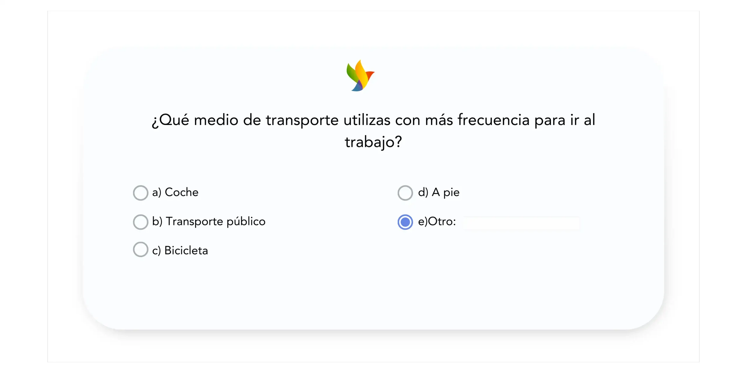 Las preguntas complementarias, también conocidas como preguntas de extensión, se encuentran frecuentemente al final de una lista de opciones y suelen presentarse en el formato «Otro: por favor, especifique» seguido de un cuadro de texto. Estas preguntas permiten a los encuestados proporcionar una respuesta que no está incluida en las opciones predefinidas. Al incluir una pregunta complementaria, te aseguras de cubrir todas las posibles respuestas y puedes descubrir opciones en las que no habías pensado anteriormente.