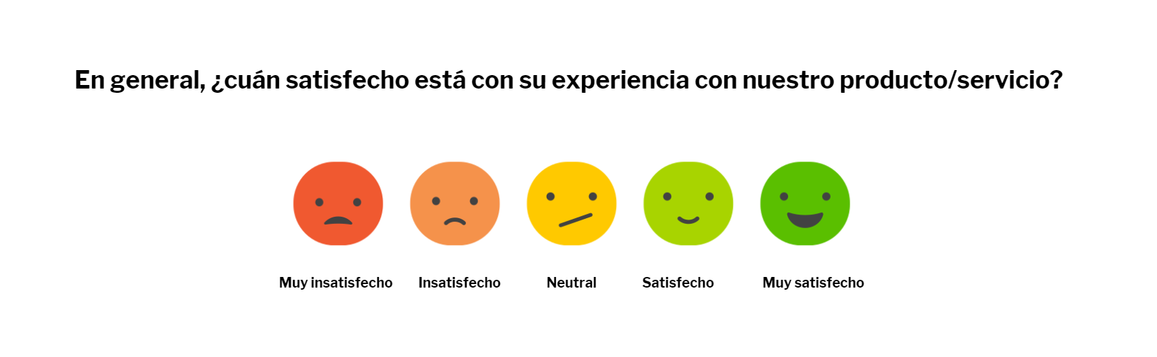 Los clientes pueden responder a esta pregunta con una escala Likert, que suele tener cinco puntos, desde «Muy satisfecho» hasta «Muy insatisfecho».