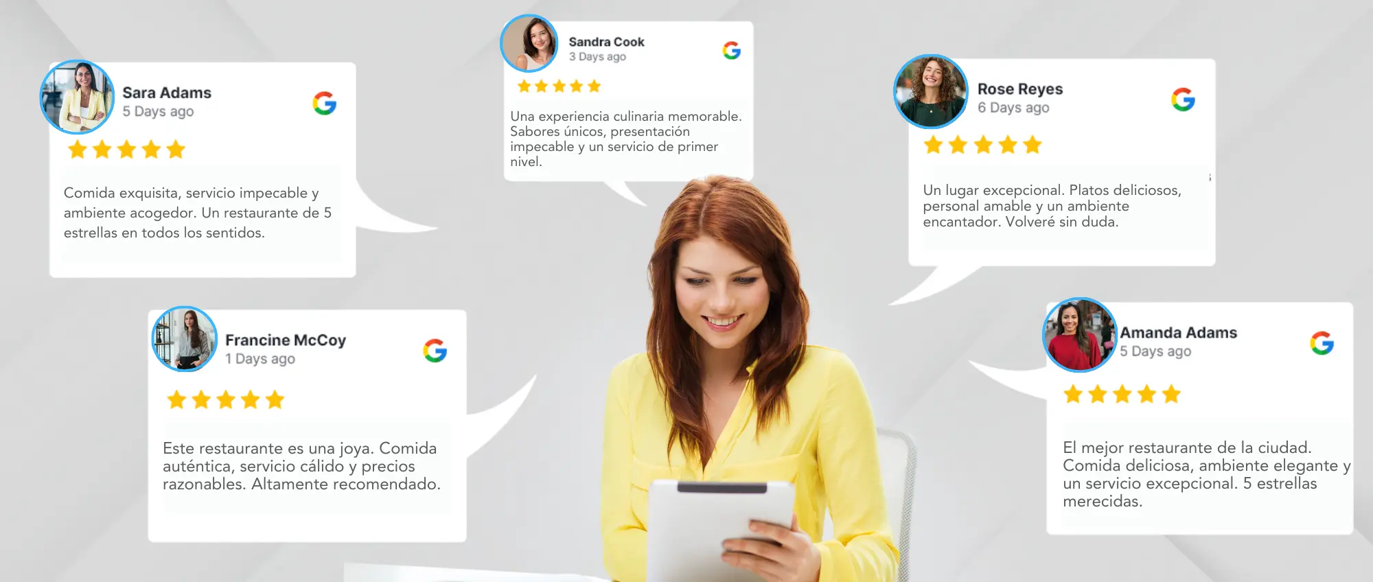 - Monitorear y responder a las reseñas en línea y menciones de marca en redes sociales